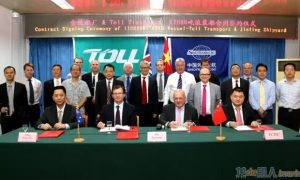 近日,金陵船廠與澳大利亞TOLL SHIPPING公司正式簽訂2艘12000噸滾裝船建造合同。 12000噸滾裝船是目前世界上先進、綠色的貨物滾裝船,英國Sea Highways公...